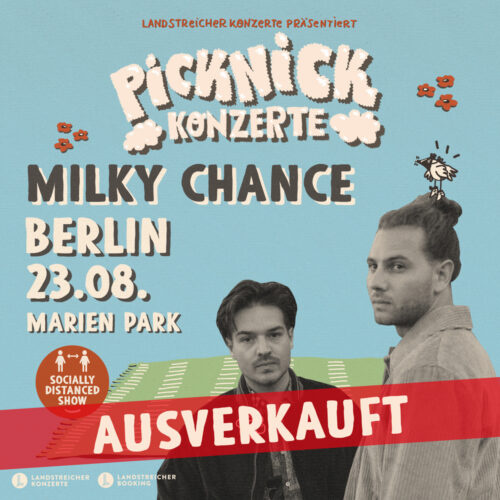 Picknick Konzerte 2020 - Live im Marienpark Präsentiert von: MTV & Radioeins Marienpark, Berlin Einlass: 18:30 · Beginn: 20:00 · Preis: 49,35 € inkl. Geb. TicketsDas Konzert ist restlos ausverkauft, es wird keine Tickets mehr an der Abendkasse geben! Falls ihr leer ausgegangen seid und das Konzert im Live-Stream verfolgen wollt habt ihr hier die Chance dazu: http://livestream.milkychance.net/